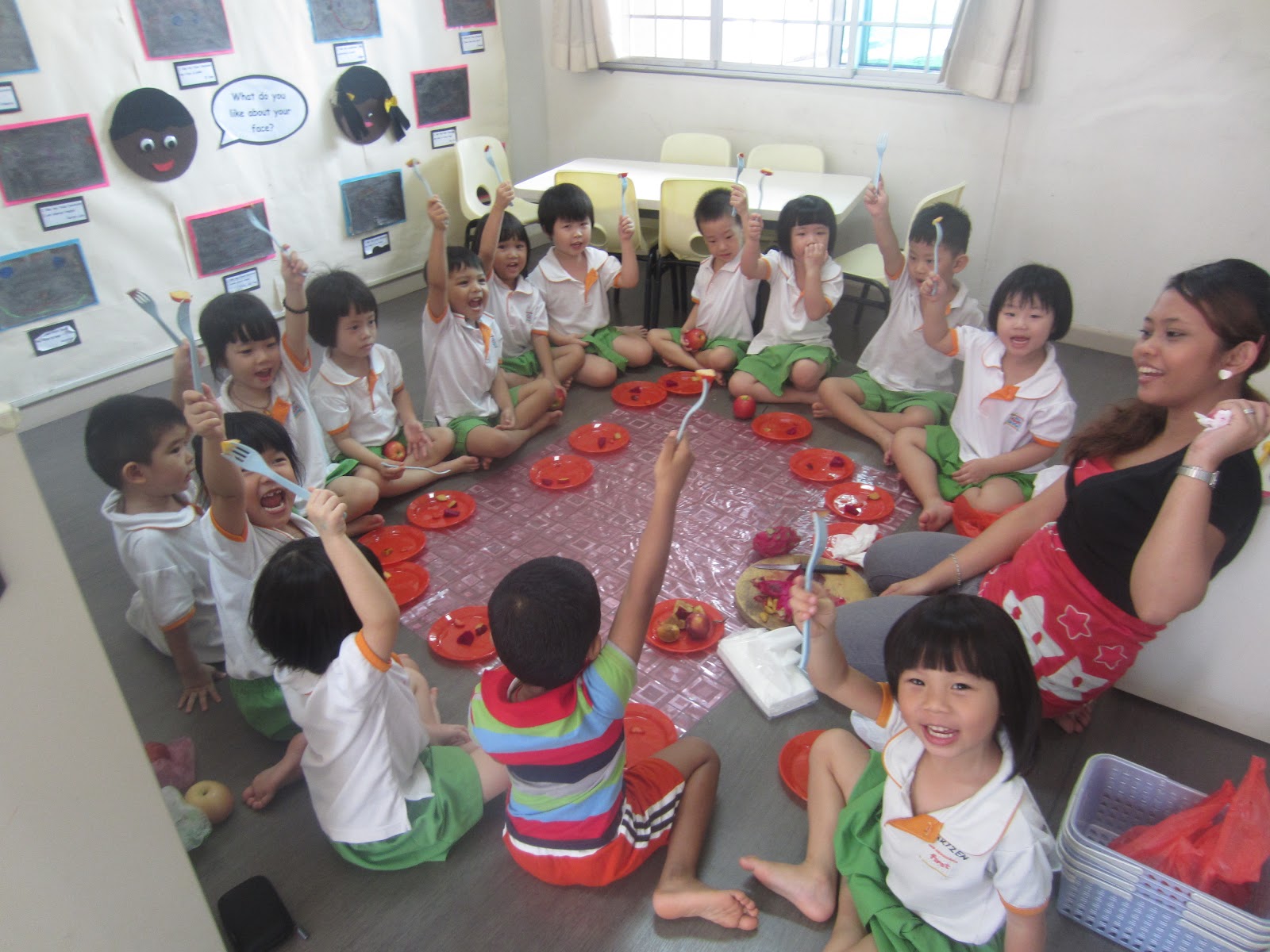 Celebrating their own birthday with their classmates in school can be fun and joyful for the children. In this month, a book called “Happy Birthday, Sam” were read to them where they learnt the concept of matching 1 to 1 correspondence using the birthday candles.